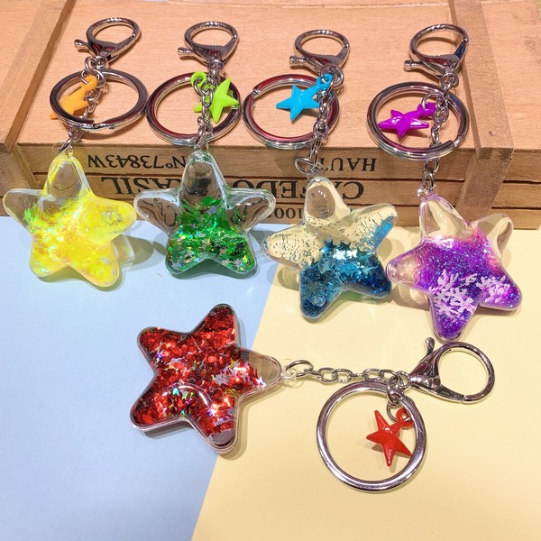 流沙五角星创意钥匙扣挂件 单个出颜色随机