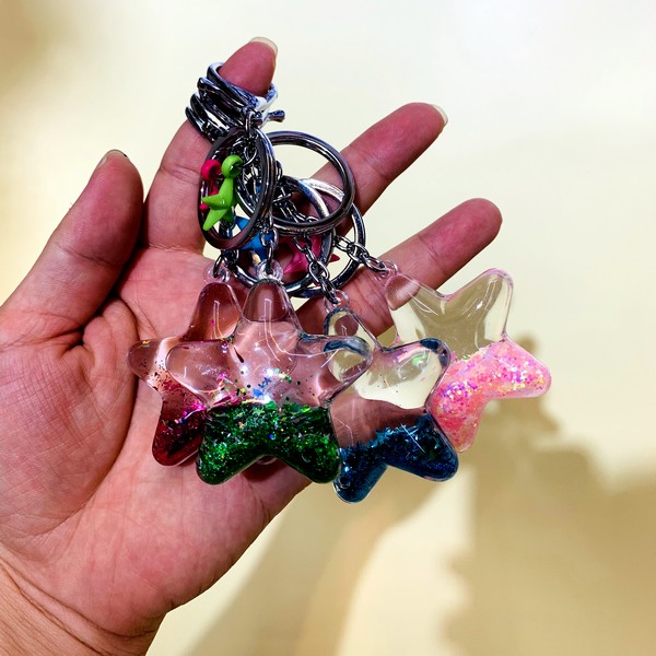 流沙五角星带铃铛 可爱创意卡通钥匙扣挂件 4个款 4个混色起批