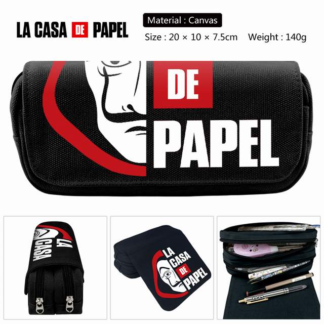 纸钞屋 黑色 动漫双层多功能大容量帆布学生笔袋文具盒钱包 20X10X7.5CM 140G