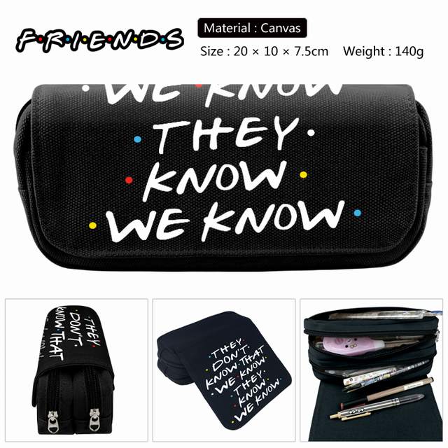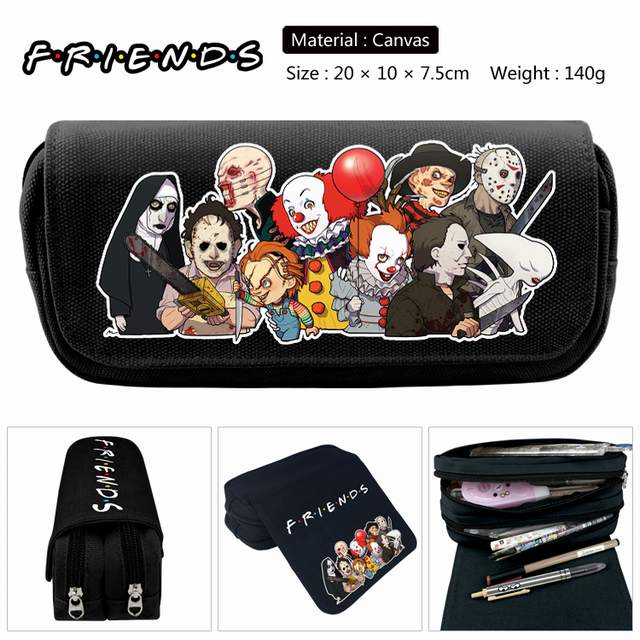 老友记 英文款-1 黑色 动漫双层多功能大容量帆布学生笔袋文具盒钱包 20X10X7.5CM 140G