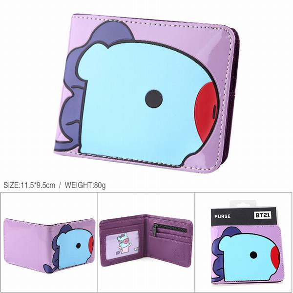 BTS-防弹少年团 BT21 河马款 漆皮全彩短款印花二折钱包 11.5X9.5CM 80G