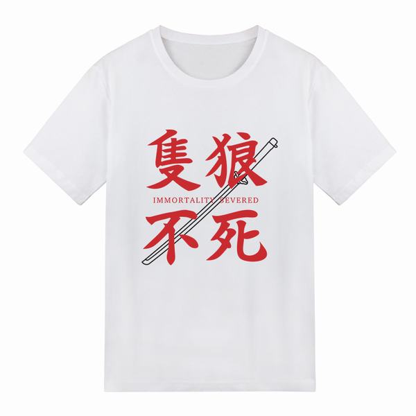 只狼不死-白色印花短袖T恤 M L XL XXL