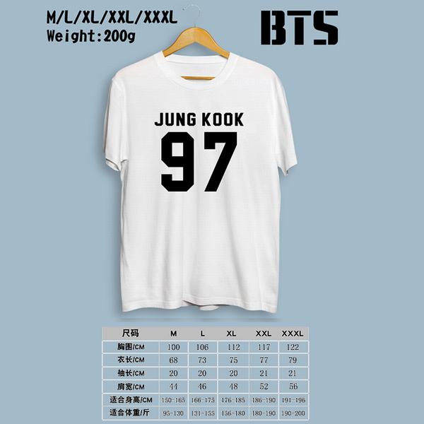 BTS防弹少年团-97JK白色印花圆领短袖T恤M-L-XL-XXL-XXXL