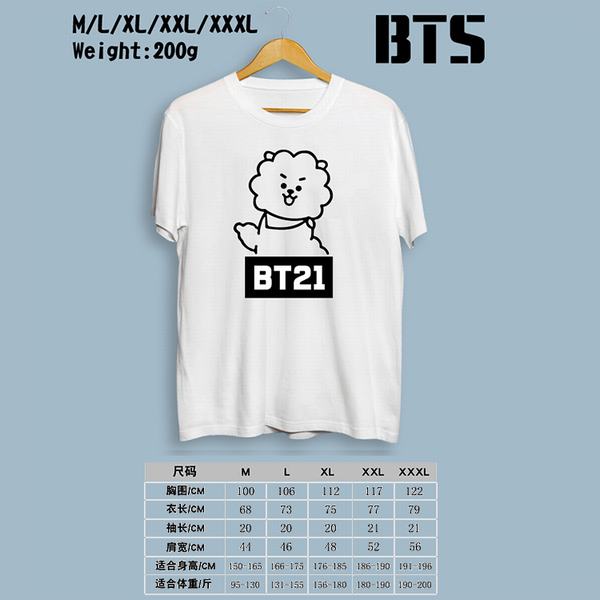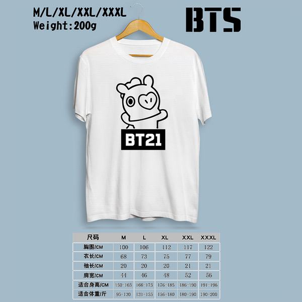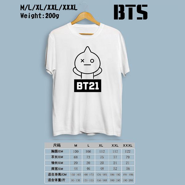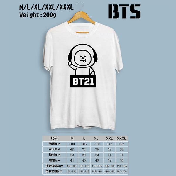 BTS防弹少年团BT21-机器人白色印花圆领短袖T恤M-L-XL-XXL-XXXL