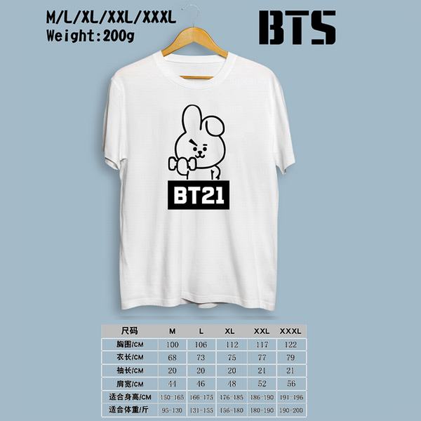 BTS防弹少年团BT21-兔子白色印花圆领短袖T恤M-L-XL-XXL-XXXL