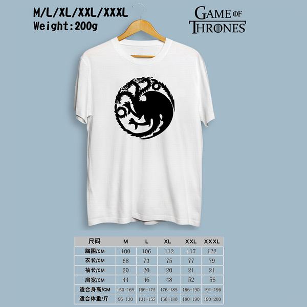 权力的游戏-2白色印花圆领短袖T恤M-L-XL-XXL-XXXL