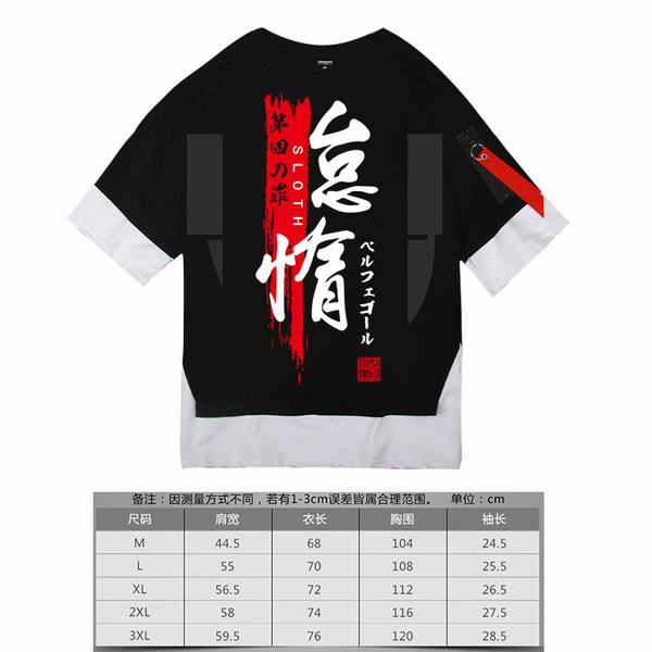 东京食尸鬼 宽松棉质 假两件短袖T恤 08黑色 M-3XL 共5个码