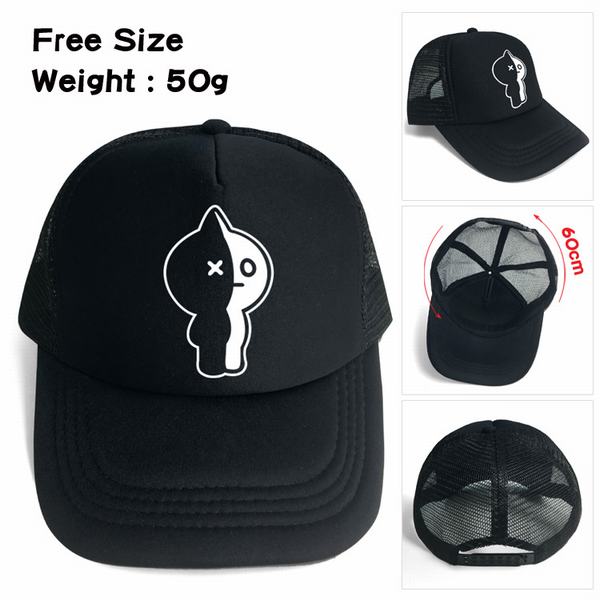 BTS防弹少年团黑白机器人标志丝印潮流网格帽子