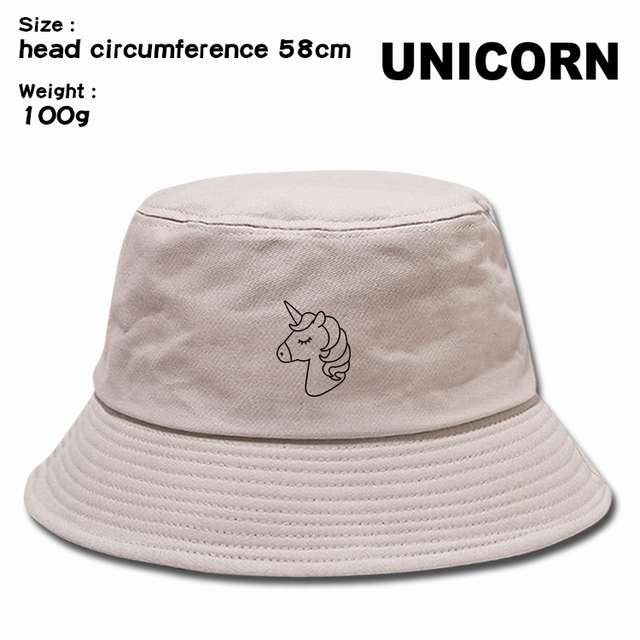 独角兽 白色 动漫丝印帆布渔夫帽帽子 头围58CM 100G