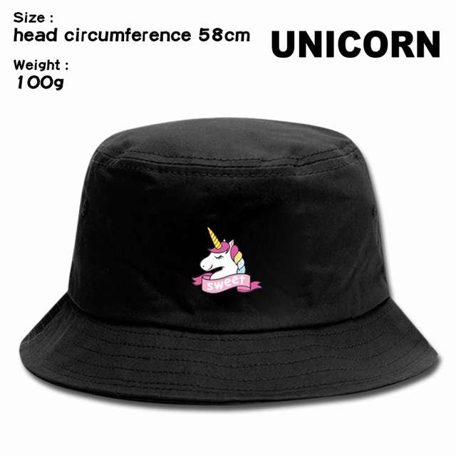 独角兽 黑色 卡通动漫丝印帆布渔夫帽帽子 头围58CM 100G