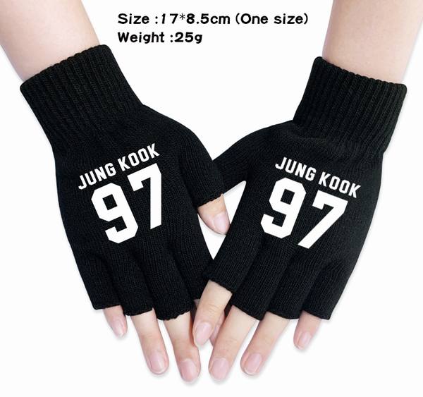 防弹少年团 BTS-1A 黑色 动漫针织半指手套