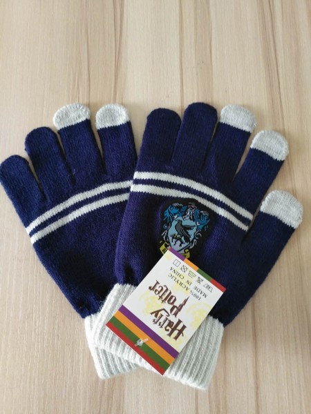 哈利波特拉文克劳学院蓝色 针织保暖全指触屏手套 5双起批