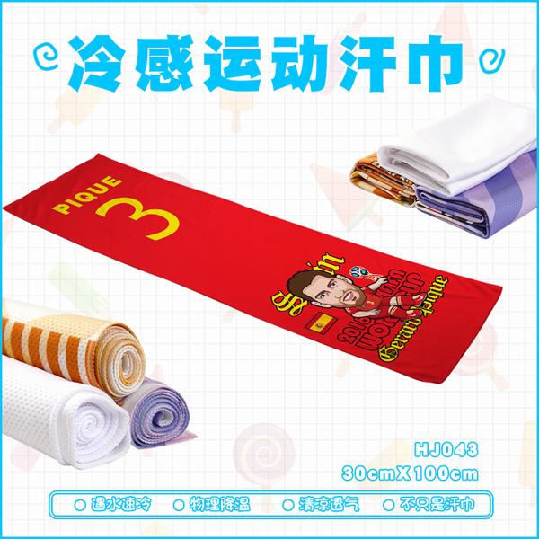 HJ037-2018俄罗斯世界杯西班牙国家队冷感运动毛巾30X100CM