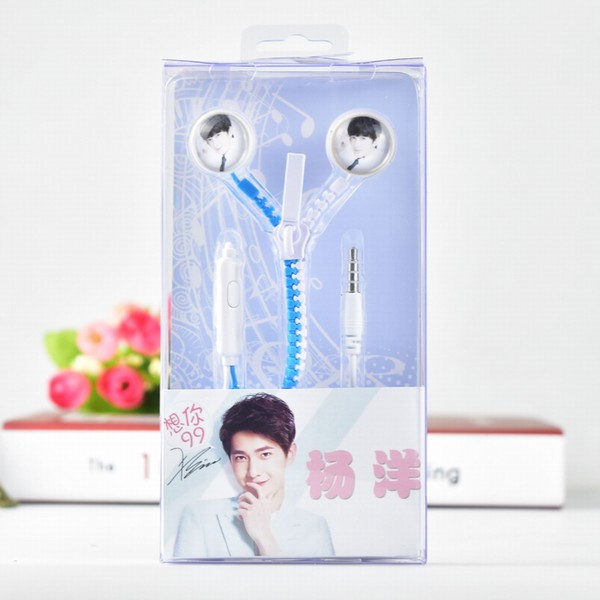 杨洋明星周边双色拉链线可语音入耳式耳机