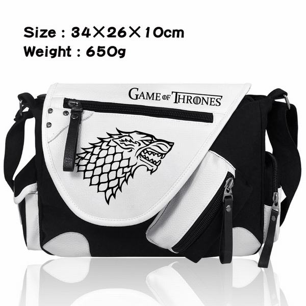 权利的游戏狼头标志加厚PU皮帆布布拼色黑白挎包