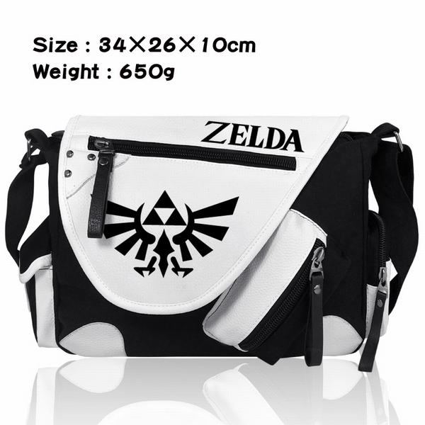 塞尔达传说标志加厚PU皮帆布布拼色黑白挎包