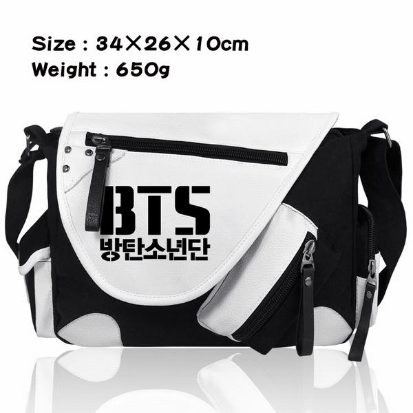 BTS防弹少年团BTS字母汉字加厚PU皮帆布布拼色黑白挎包