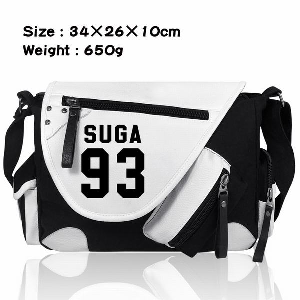 BTS防弹少年团SUGA 93标志加厚PU皮帆布布拼色黑白挎包