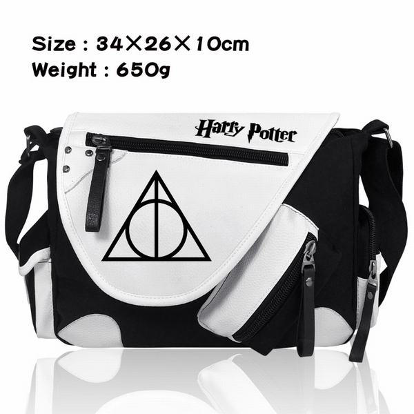 哈利波特三角加厚PU皮帆布布拼色黑白挎包
