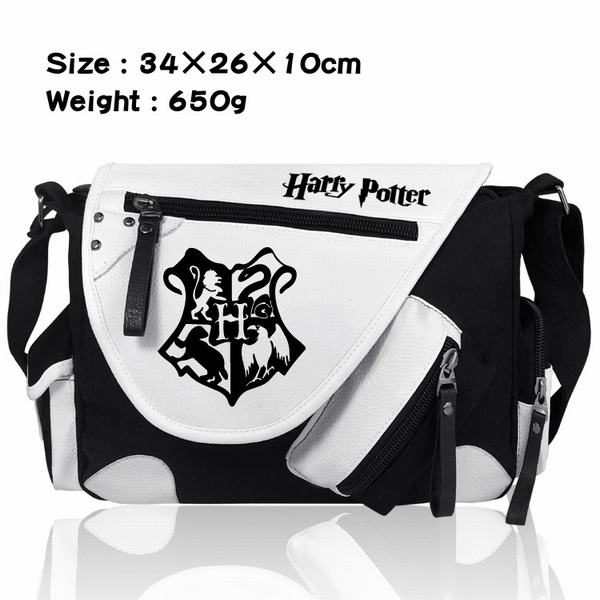 哈利波特学院加厚PU皮帆布布拼色黑白挎包