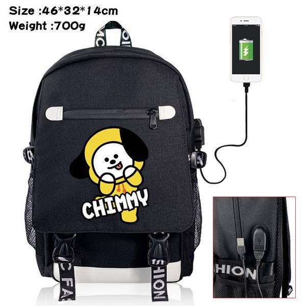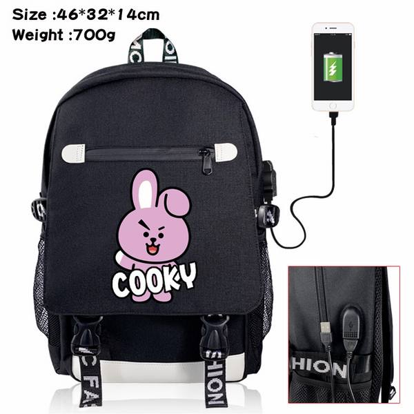 bts-5A 防弹少年团 黑色 彩印数据线双肩背包