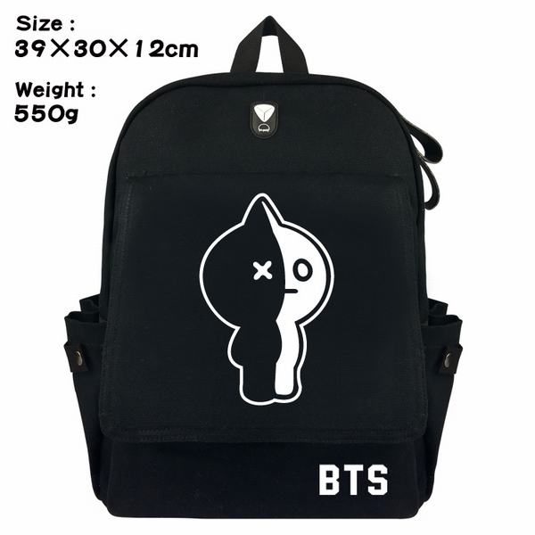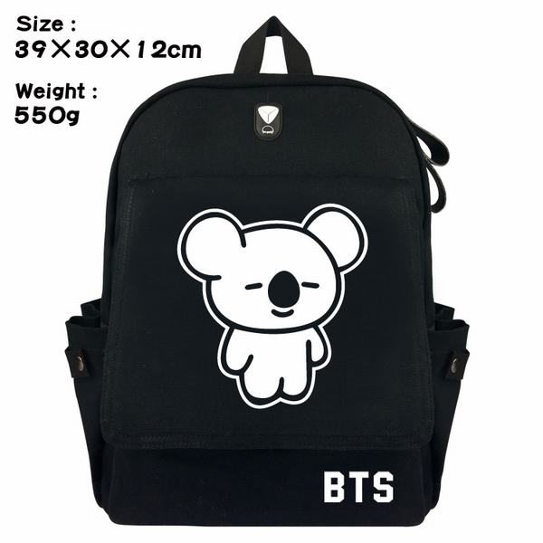 BTS防弹少年团考拉标志帆布翻盖丝印双肩背包