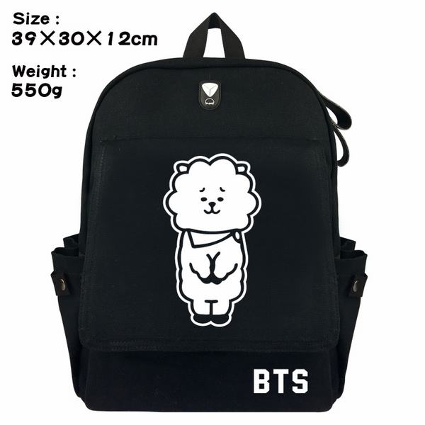 BTS防弹少年团小兔标志帆布翻盖丝印双肩背包