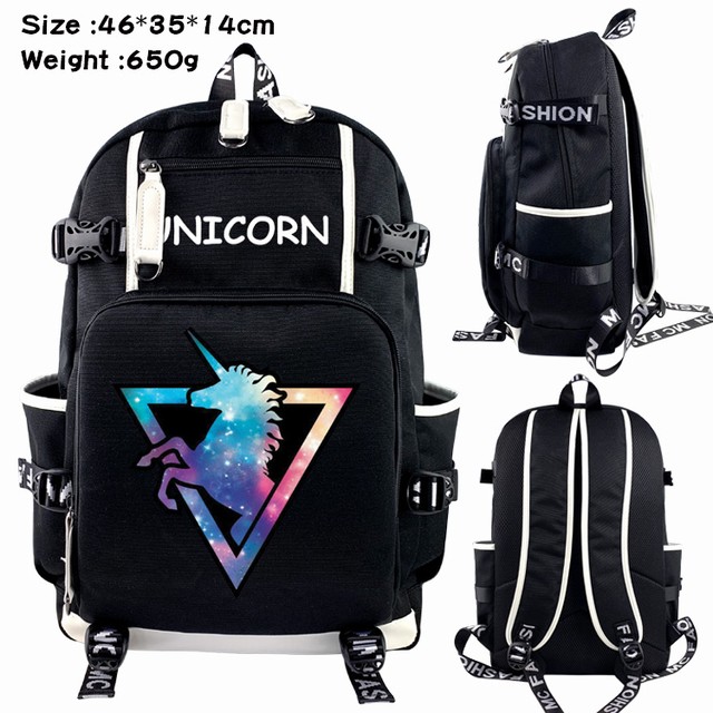独角兽 黑色 动漫双肩包学生背包书包 46X35X14CM 650G