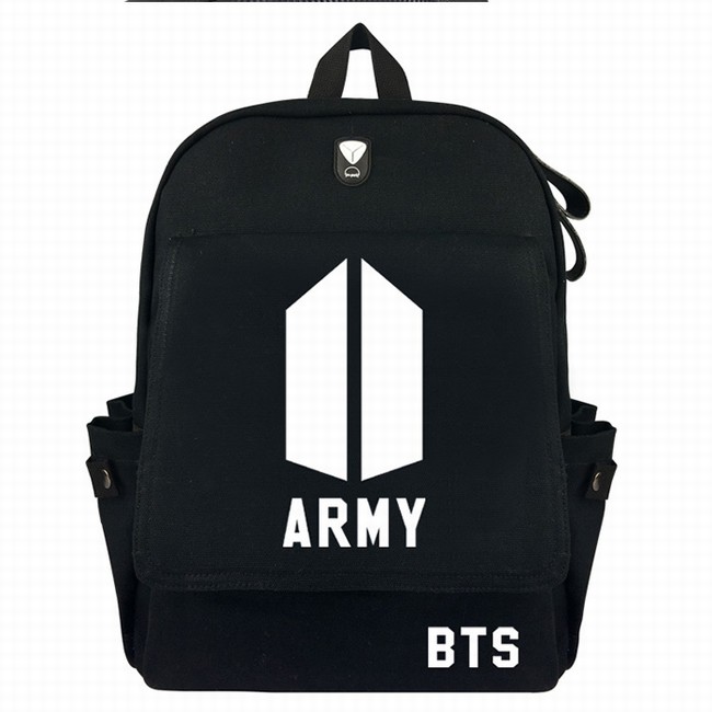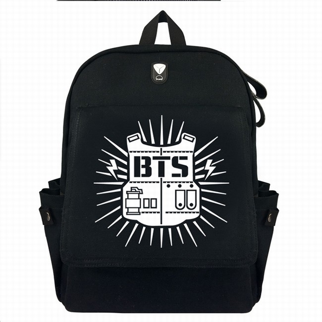BTS防弹少年团黑色加厚帆布双肩背包A款