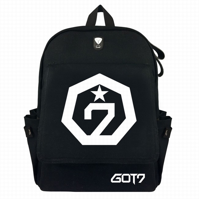 BTS防弹少年团黑色加厚帆布双肩背包D款