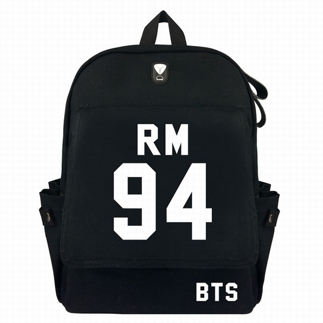 BTS防弹少年团94黑色加厚帆布双肩背包B款