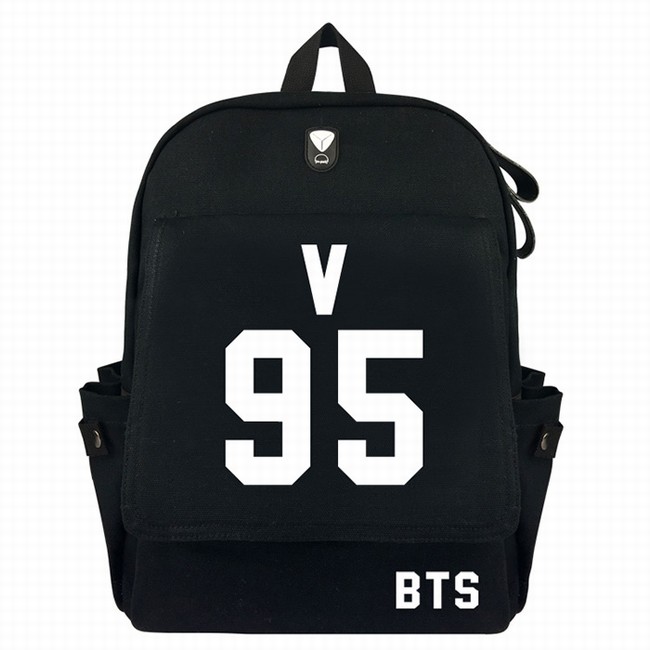 BTS防弹少年团95黑色加厚帆布双肩背包A款