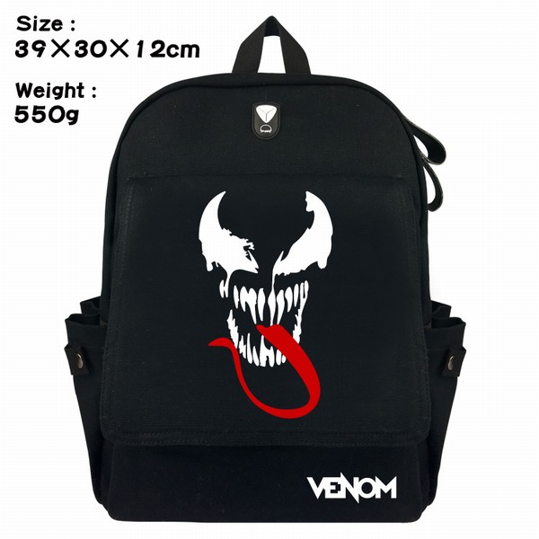 毒液-黑色帆布翻盖背包双肩包39X30X12CM