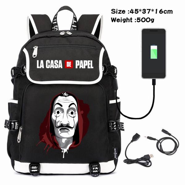 纸钞屋-227 动漫600D防水帆布双肩包USB充电数据线背包
