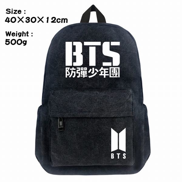 BTS防弹少年团BTS字母汉字标志帆布丝印双肩背包