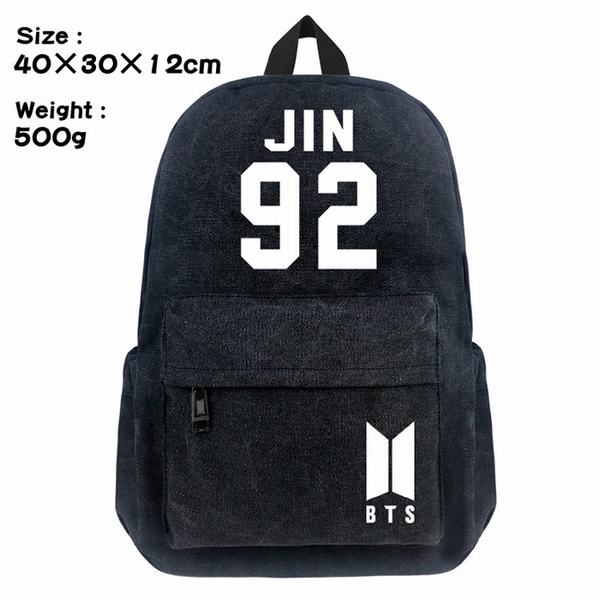 BTS防弹少年团JIN 92标志帆布丝印双肩背包