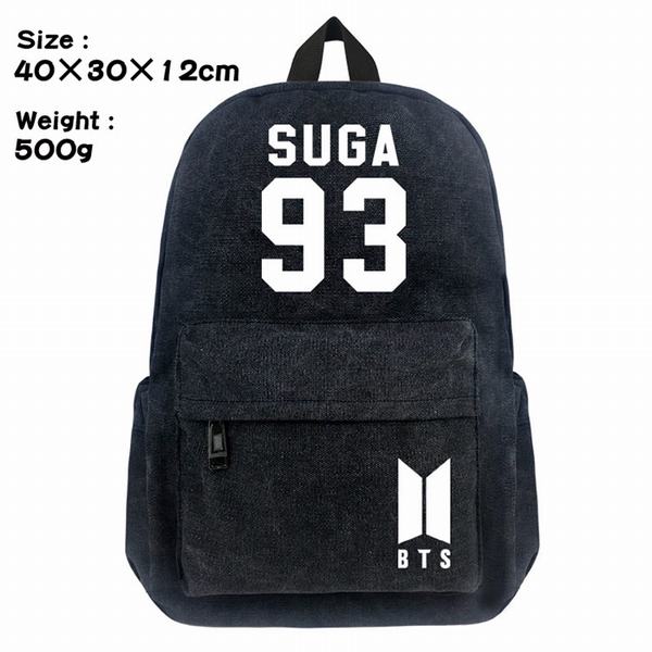 BTS防弹少年团SUGA 93标志帆布丝印双肩背包