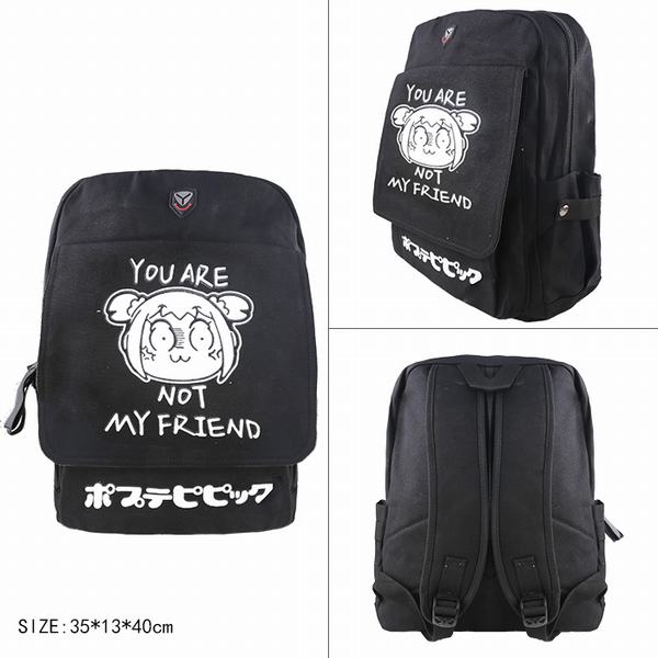 POP子和PIPI美的日常 POP子表情包 帆布黑色拉链背包双肩包 35X13X40CM