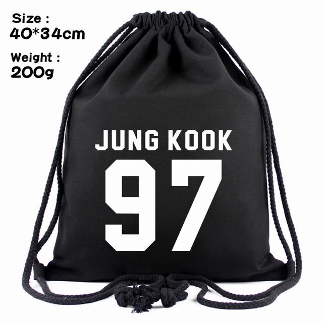 BTS防弹少年团JUNG KOOK标志丝印帆布束口背包
