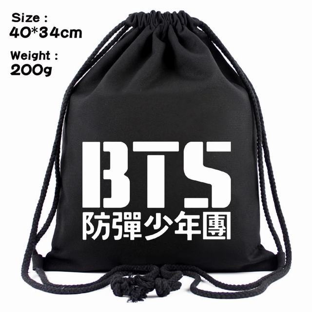 BTS防弹少年团图文标志丝印帆布束口背包