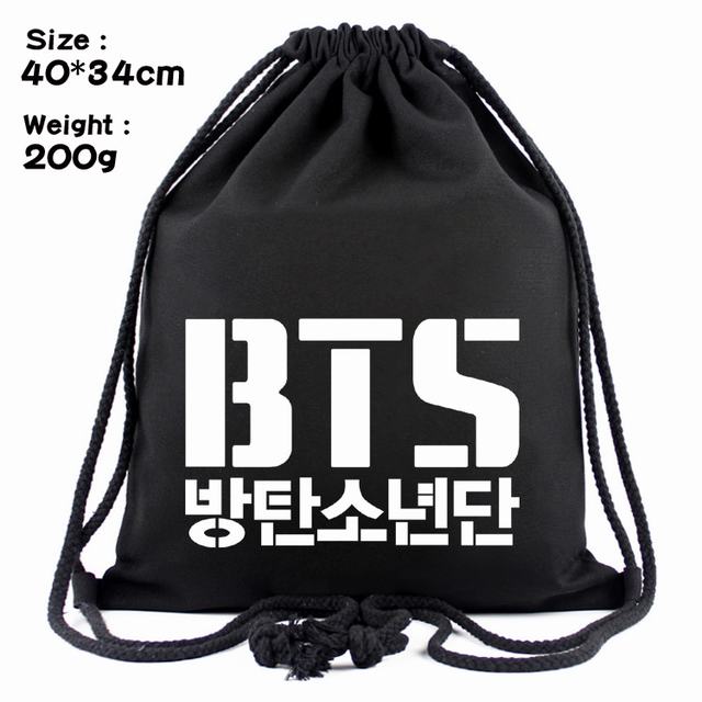 BTS防弹少年团韩文字标志丝印帆布束口背包