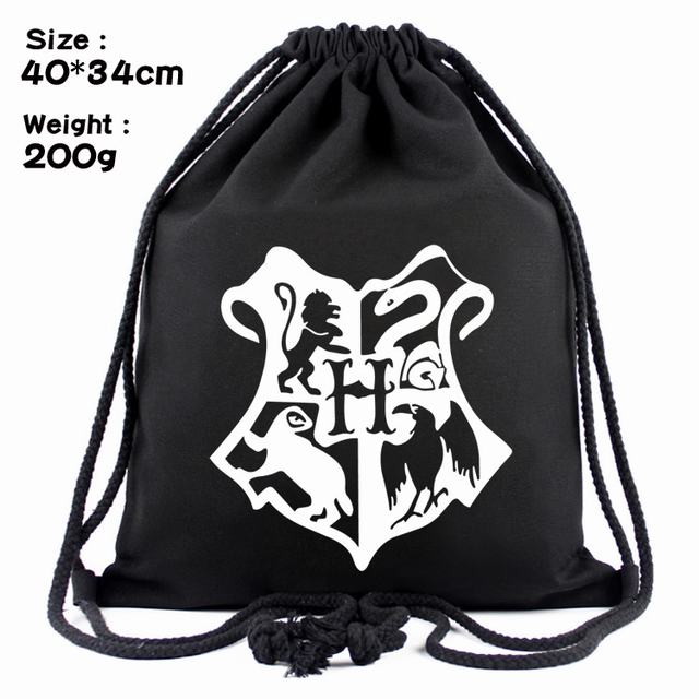 哈利波特标志丝印帆布束口背包