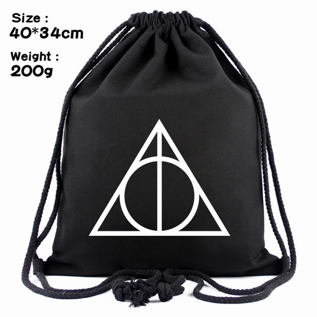 哈利波特卢娜死亡圣器三角标志丝印帆布束口背包
