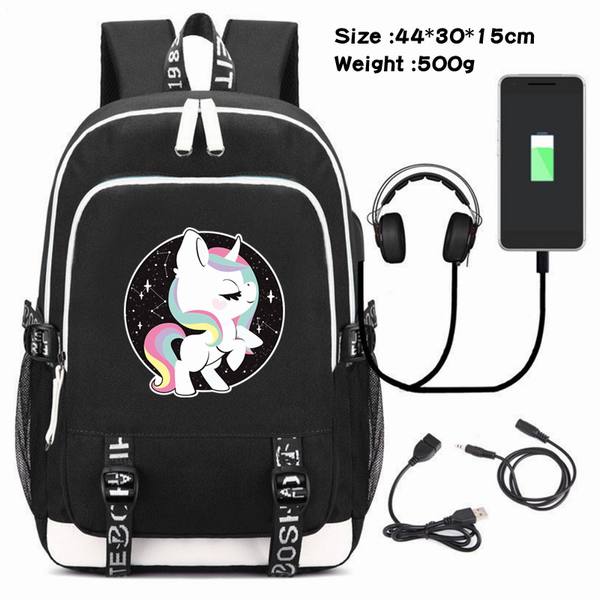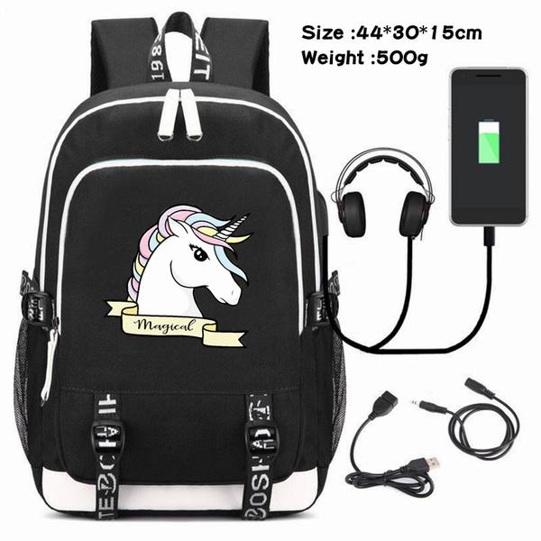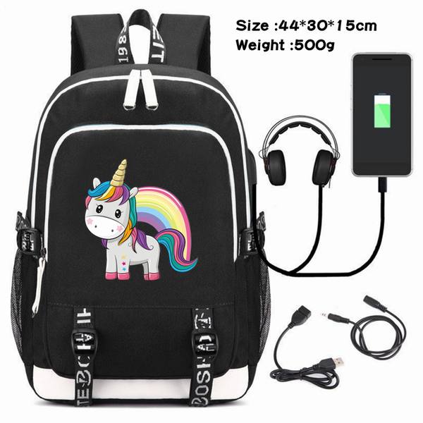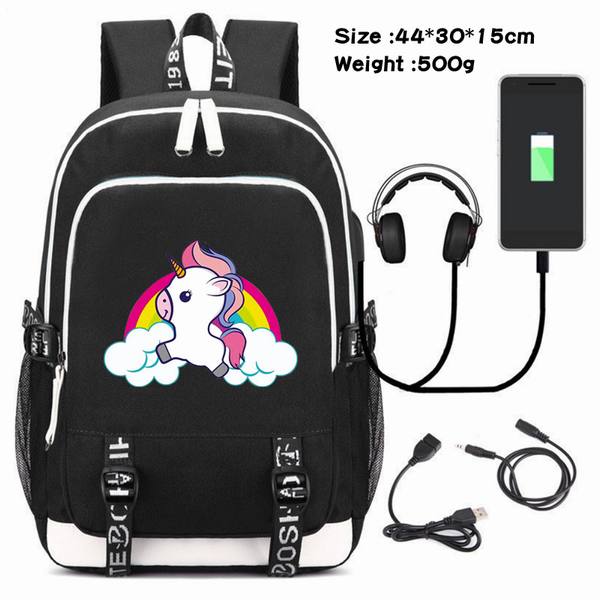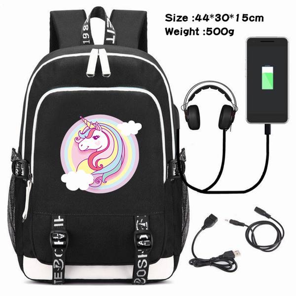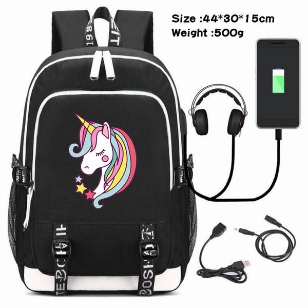 独角兽-090 动漫USB充电双肩包数据线背包(双线接口)