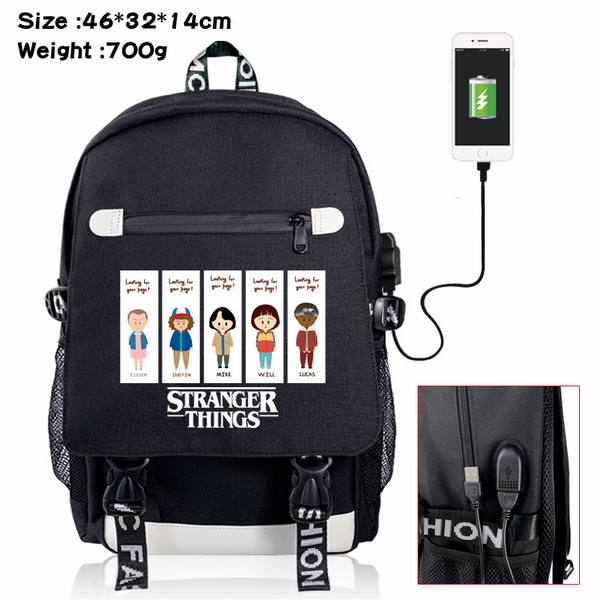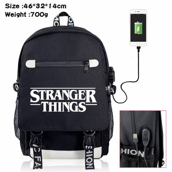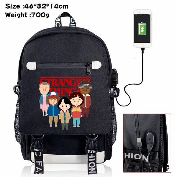 怪奇物语-13A 黑色 彩印数据线双肩背包