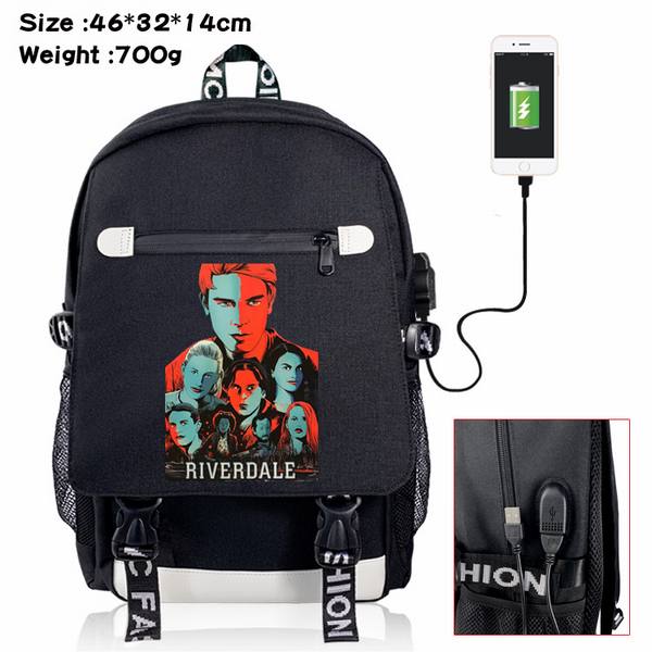 怪奇物语-11A 黑色 彩印数据线双肩背包