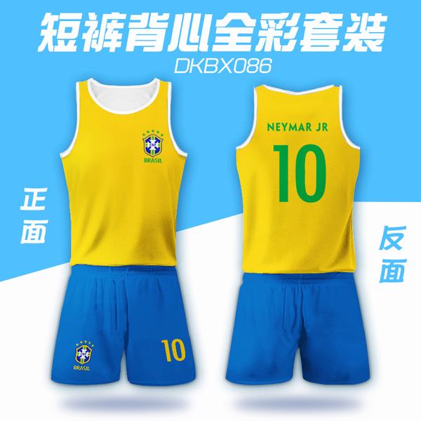 092-2018俄罗斯世界杯巴西内马尔球衣网眼布短裤背心套装一套出S M L XL XXL
