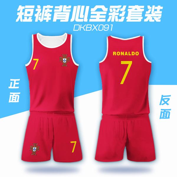 091-2018俄罗斯世界杯葡萄牙国家队球衣网眼布短裤背心套装一套出S M L XL XXL