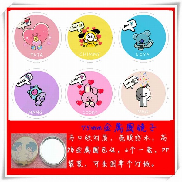BTS-5 防弹少年团6个装75mm金属圈镜子