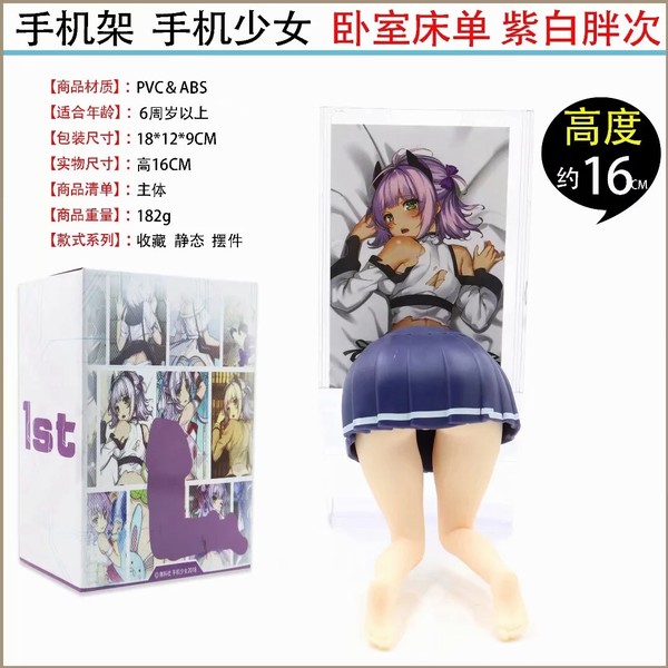 无料社 升级版 卧室床单 紫白胖次 性感手机少女 手机支架 盒装16CM